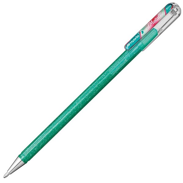 PENTEL K110 HYBRID DUAL METALLIC GEL INK PEN 1.0MM TURQUOISE GREEN / METALLIC RED AND GREEN BOX 12