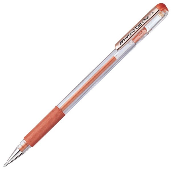 PENTEL K118 HYBRID GEL GRIP GEL INK PEN 0.8MM METALLIC BROWN BOX 12