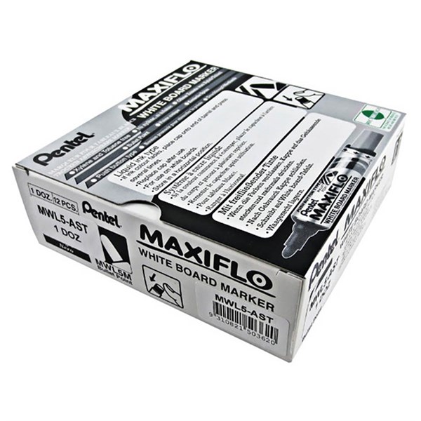 PENTEL MWL6 MAXIFLO WHITEBOARD MARKER CHISEL 7.0MM ASSORTED BOX 12
