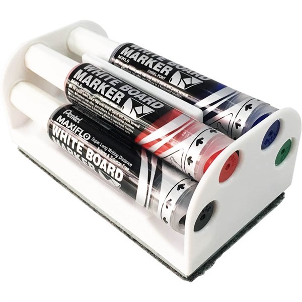 PENTEL MWL6 MAXIFLO WHITEBOARD MARKER CHISEL 7.0MM WITH ERASER ASSORTED WALLET 4