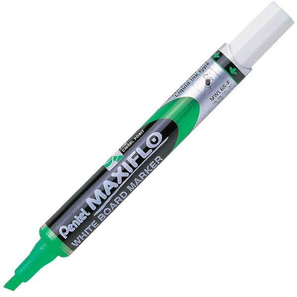 PENTEL MWL6S MAXIFLO FINE POINT WHITEBOARD MARKER CHISEL 4.8MM GREEN