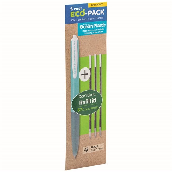 PILOT ECO PACK SUPER GRIP G RETRACTABLE BALLPOINT PEN 0.7MM WITH 3 REFILLS BLACK