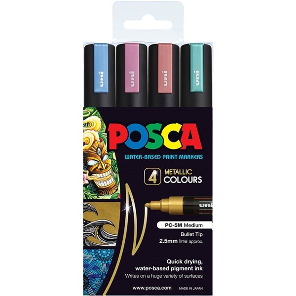 POSCA PC-5M PAINT MARKER BULLET MEDIUM 2.5MMM ASSORTED METALLIC PACK 4
