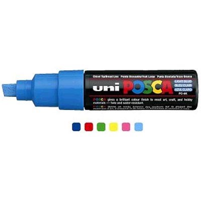 - POSCA PC-8K broad chisel tip draws neat curves and covers large surfaces in a large range of colours