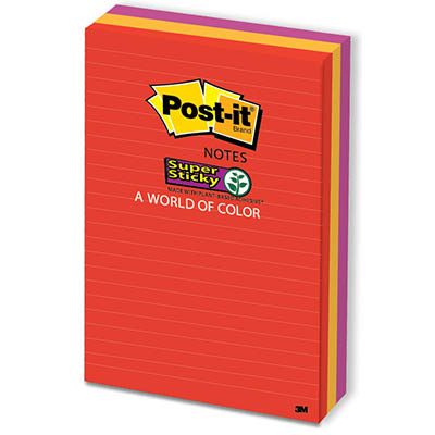 POST-IT 660-3SSAN SUPER STICKY LINED NOTES 98 X 149MM PLAYFUL PRIMARIES PACK 3