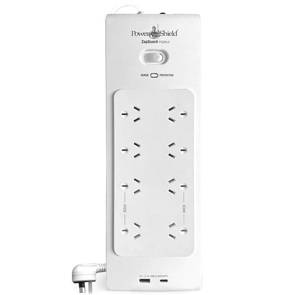 The PowerShield ZapGuard PSZ8U2 Surge Board will protect your home and office electronics from dangerous surges and spikes and is ideal for charging mobiles, laptops and other small USB powered devices, It is highly rated to withstand power surges and spikes of up to 2,100 Joules / 60,000 Amps - High surge protection