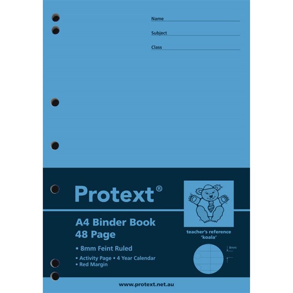 PROTEXT BINDER BOOK RULED 8MM 70GSM 48 PAGE A4 KOALA ASSORTED