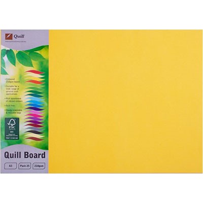 QUILL BOARD 210GSM A3 LEMON PACK 25