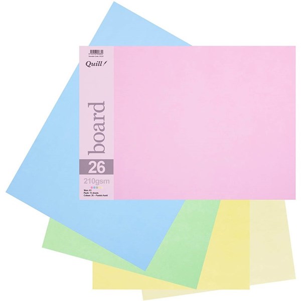QUILL BOARD 210GSM A3 PASTEL ASSORTED PACK 15