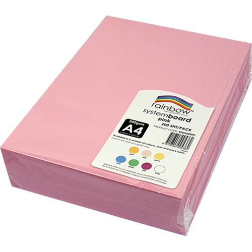 RAINBOW SYSTEM BOARD 200GSM A4 PINK PACK 200