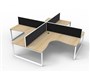 RAPID INFINITY DELUXE 4 PERSON LOOP LEG CORNER WORKSTATION POD 1800 X 1800MM BLACK SCREEN / NATURAL OAK TOP / WHITE FRAME