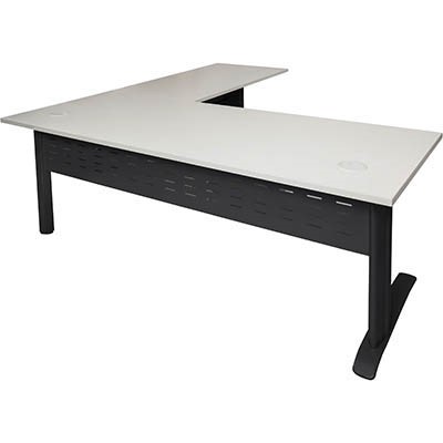 RAPID SPAN DESK AND RETURN WITH METAL MODESTY PANEL 1800 X 700MM / 1100 X 600MM WHITE/BLACK