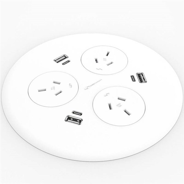 Blink Power Pod 3 GPO + 3 USB - White - Stylish Design Solution Incorporating 3 GPO's and 3 USB Type - C/A Fast Charge Modules