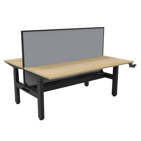 RAPIDLINE BOOST CRANK BACK TO BACK WORKSTATION WITH CABLE TRAY AND SCREEN 1800 X 1500 X 705MM NATURAL OAK TOP AND BLACK SATIN FRAME