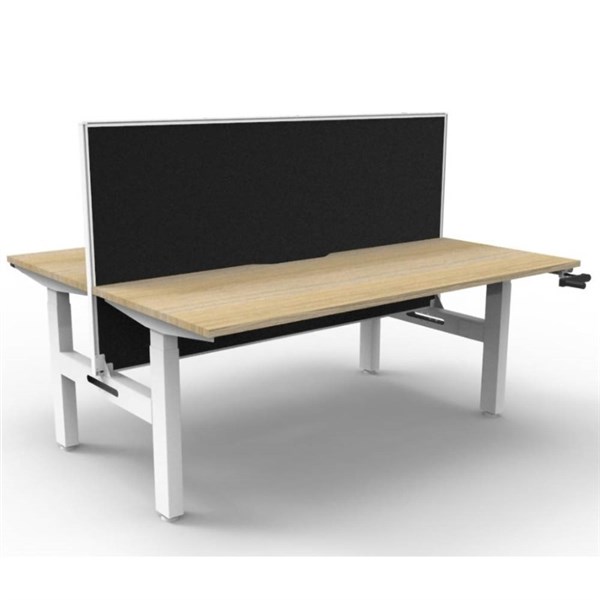 RAPIDLINE BOOST CRANK BACK TO BACK WORKSTATION WITH SCREEN 1200 X 1500 X 705MM NATURAL OAK TOP AND WHITE SATIN FRAME