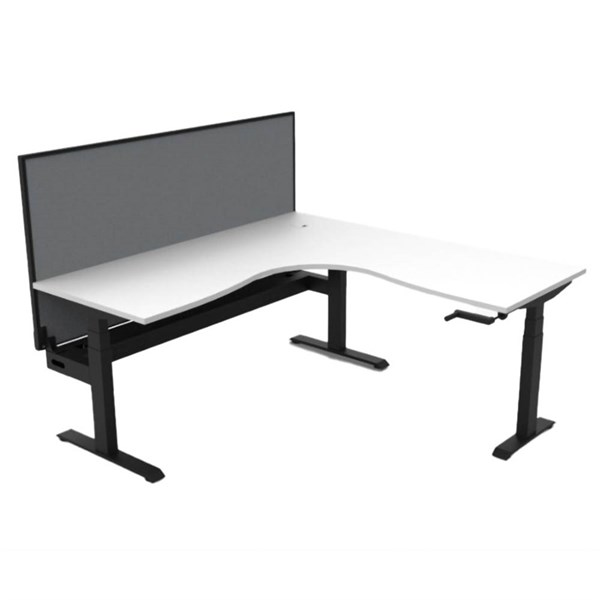 RAPIDLINE BOOST CRANK CORNER WORKSTATION WITH CABLE TRAY AND SCREEN 1800 X 1800 X 750MM NATURAL WHITE TOP / BLACK SATIN FRAME