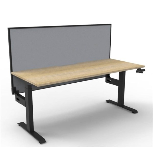 RAPIDLINE BOOST CRANK SINGLE SIDED WORKSTATION WITH SCREEN 1200 X 750 X 705MM NATURAL OAK TOP AND BLACK SATIN FRAME