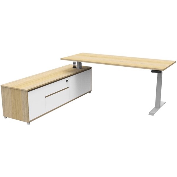RAPIDLINE BOOST PLUS EXECUTIVE HEIGHT ADJUSTABLE WORKSTATION LHC 2100 X 750MM NATURAL OAK/WHITE