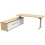 - The integrated side cabinet provides convenient storage with drawers and cupboards, enhancing workspace organisation and efficiency