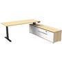 - The integrated side cabinet provides convenient storage with drawers and cupboards, enhancing workspace organisation and efficiency