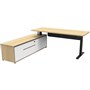 - The integrated side cabinet provides convenient storage with drawers and cupboards, enhancing workspace organisation and efficiency