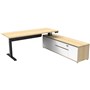- The integrated side cabinet provides convenient storage with drawers and cupboards, enhancing workspace organisation and efficiency