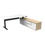 - The integrated side cabinet provides convenient storage with drawers and cupboards, enhancing workspace organisation and efficiency