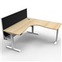 RAPIDLINE BOOST PLUS HEIGHT ADJUSTABLE CORNER WORKSTATION WITH SCREEN / CABLE TRAY 1500 X 1500 X 750MM NATURAL OAK TOP / WHITE FRAME / BLACK SCREEN