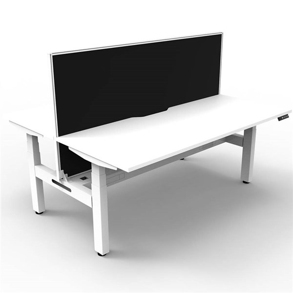 RAPIDLINE BOOST PLUS HEIGHT ADJUSTABLE DOUBLE SIDED WORKSTATION WITH SCREEN / CABLE TRAY 1200 X 750MM NATURAL WHITE TOP / WHITE FRAME / BLACK SCREEN