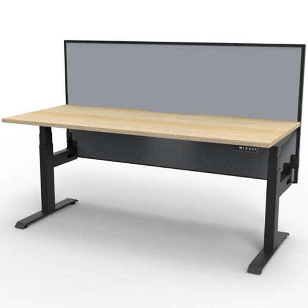 RAPIDLINE BOOST PLUS HEIGHT ADJUSTABLE SINGLE SIDED WORKSTATION WITH SCREEN 1200 X 750MM NATURAL OAK TOP / BLACK FRAME / GREY SCREEN