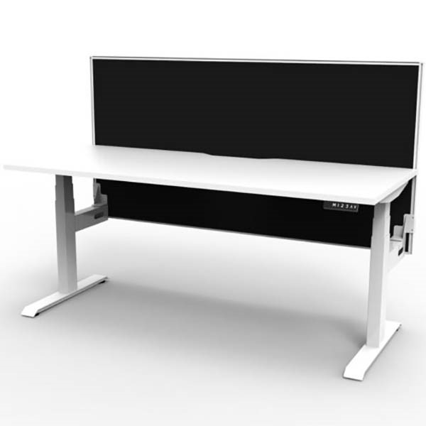 RAPIDLINE BOOST PLUS HEIGHT ADJUSTABLE SINGLE SIDED WORKSTATION WITH SCREEN 1500 X 750MM NATURAL WHITE TOP / WHITE FRAME / BLACK SCREEN