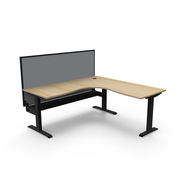 RAPIDLINE BOOST STATIC CORNER WORKSTATION WITH SCREEN AND CABLE TRAY 1800 X 1800MM NATURAL OAK TOP / BLACK FRAME / GREY SCREEN