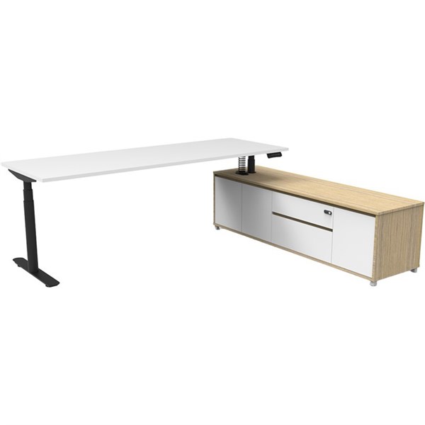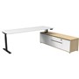 - The integrated side cabinet provides ample storage with drawers and cupboards, enhancing workspace organisation and keeping your essentials within easy reach