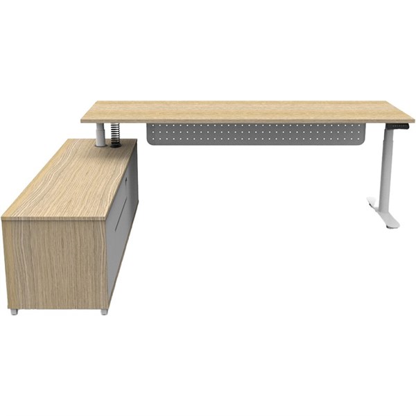 RAPIDLINE HALO PLUS EXECUTIVE HEIGHT ADJUSTABLE WORKSTATION WITH MODESTY PANEL LHC 2100 X 750MM NATURAL OAK/WHITE