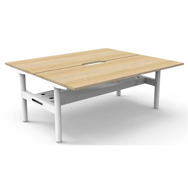 RAPIDLINE HALO STATIC BACK TO BACK WORKSTATION WITH CABLE TRAY 1800 X 750MM NATURAL OAK/WHITE