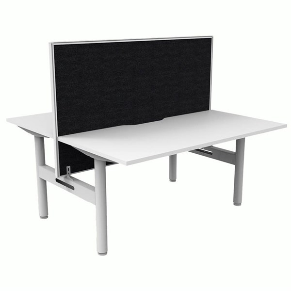 The Halo Static Back To Back Workstation provides a collaborative workspace for two users - It features a generous work surface with a scallop cut-out to the rear and a robust powder-coated frame