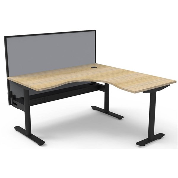 RAPIDLINE HALO STATIC CORNER WORKSTATION WITH SCREEN AND CABLE TRAY 1500 X 1500MM NATURAL OAK/BLACK