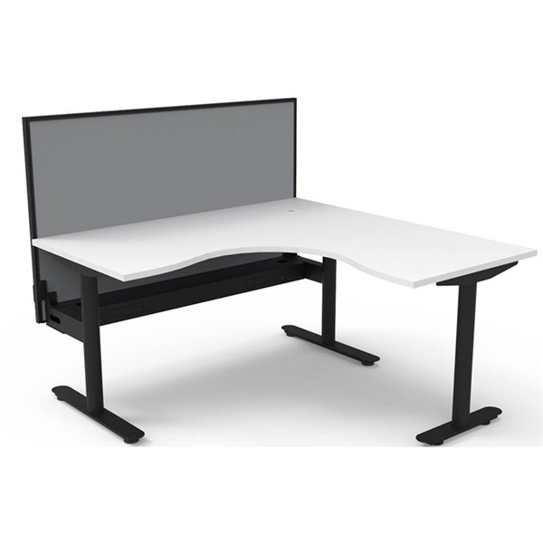 The Halo Static Corner Workstation offers a spacious and efficient workspace solution - The workstation features a robust frame with a 70mm diameter column and adjustable levelling feet, ensuring stability and ease of setup