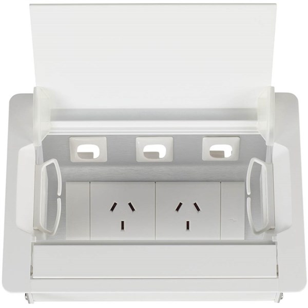 RAPIDLINE TABLE SURFACE MOUNTED SERVICE BOX 2-GPO WHITE POWERCOAT