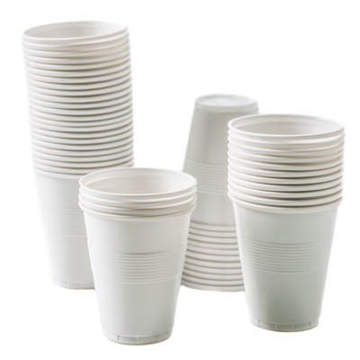 Refresh plastic cups - Disposable white plastic drinking cups for the Refresh water cooler dispenser