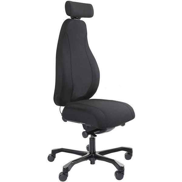 SERATI HIGH BACK CHAIR PRO-CONTROL SYNCHRO 2-D HEADREST BLACK ALUMINIUM BASE FOOTPLATES GABRIEL FIGHTER BLACK FABRIC