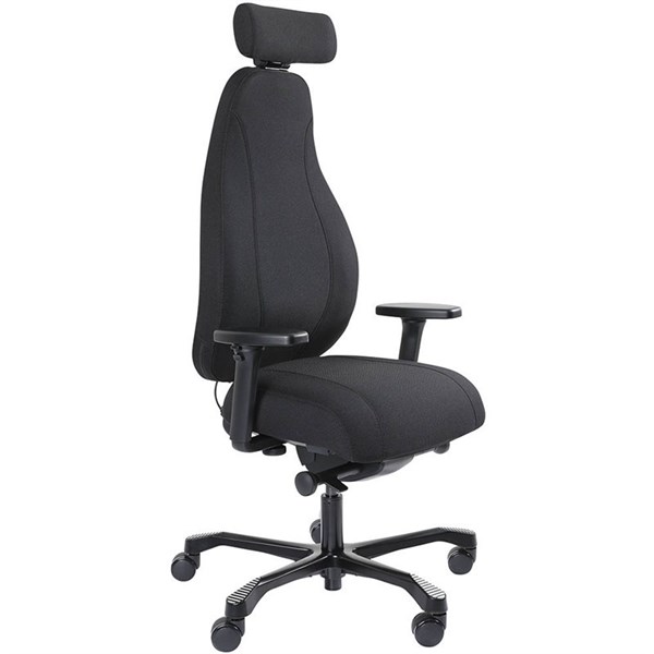 SERATI HIGH BACK CHAIR PRO-CONTROL SYNCHRO 3-D HEADREST ADJUSTABLE ARMREST BLACK ALUMINIUM BASE FOOTPLATES GABRIEL BLACK FABRIC