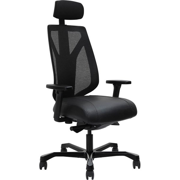 SERATI HIGH MESH BACK CHAIR BODY-WEIGHT SYNCHRO 2-D HEADREST ADJUSTABLE ARMRESTS BLACK ALUMINIUM BASE NEO BLACK LEATHER