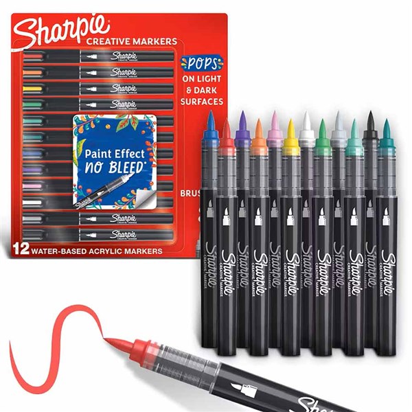 These Sharpie Creative Markers are the perfect way to bring your creative vision to life - These acrylic markers feature stunning paint-like ink that glides across the page with the control of a marker, but use a water-based formula that won't bleed through paper so your work stays clean