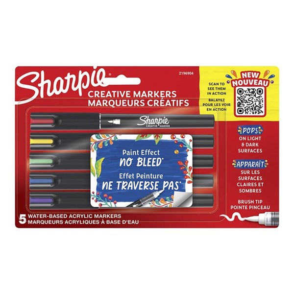 SHARPIE CREATIVE WATER-BASED ACRYLIC MARKERS BRUSH TIP ASSORTED COLOURS PACK 5