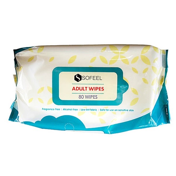 SOFEEL ADULT WET WIPES WITH SOFT COVER 80 WIPES CARTON 10