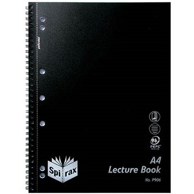 SPIRAX P906 LECTURE BOOK 7MM RULED 7 HOLE PUNCHED WIRO BOUND A4 BLACK