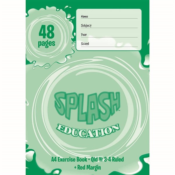 SPLASH EXERCISE BOOK QLD RULED YEAR 3/4 12MM 60GSM 48 PAGE A4
