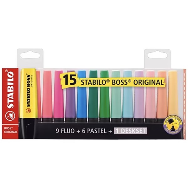 STABILO BOSS HIGHLIGHTERS DESK SET ASSORTED PACK 15