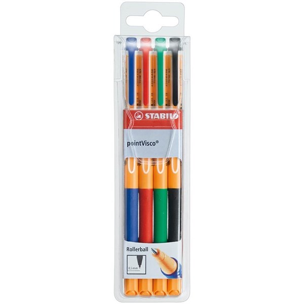 STABILO POINTVISCO ROLLERBALL PEN ASSORTED PACK 4